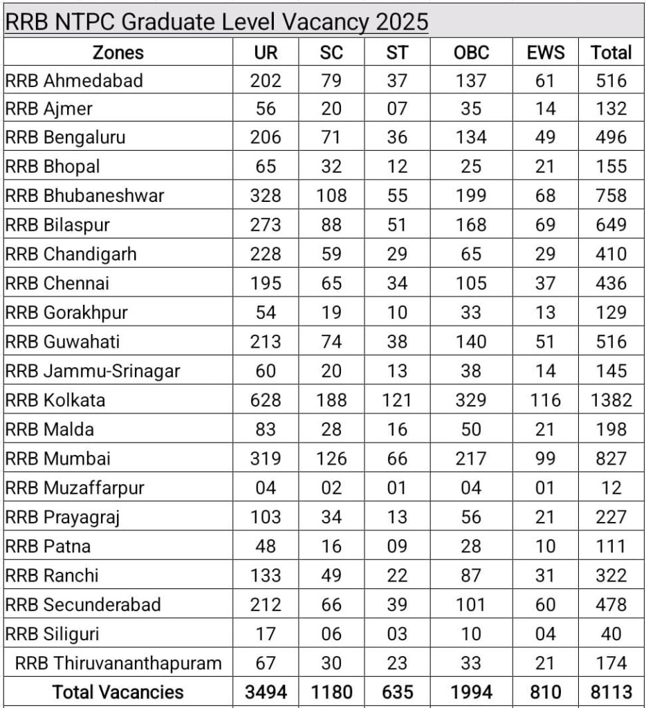 RRB NTPC Graduate level result 2025 has published on 19 September 2025. Total 1,21,695 candidates shortlisted on its official website. RRB was conducted the written exam for the post of NTPC graduate level examination 2025 for 8113 posts in 05 June to 24 June 2025. it’s online form was taken by the authority between 14 September 2024 to 20 October 2024. Candidates who have qualified their CBT I exam are waiting for the CBT II, held on 13 October 2025.
